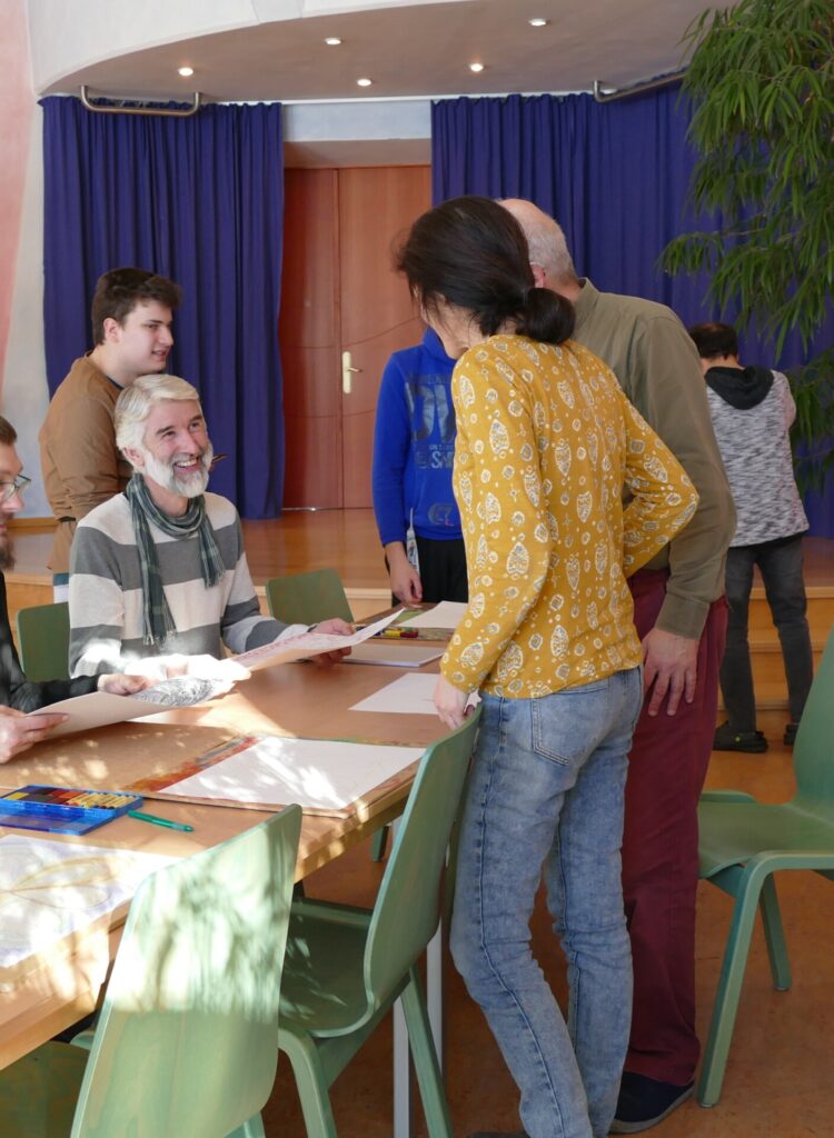 Je kunt je kunstzinnig met je medemens verbinden, wanneer je de handelingsimpuls door te tekenen of met muziek tot uiting brengt. Er ontstaat zo een non-verbale vorm van communicatie.